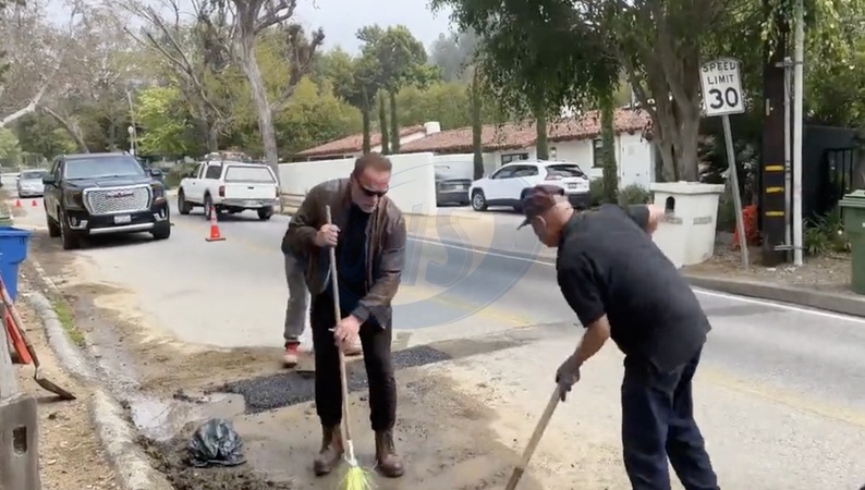 Arnold Schwarzenegger naprawia dziure na swojej ulicy_