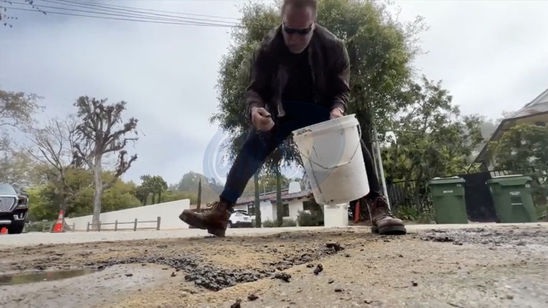 Arnold Schwarzenegger naprawia dziure na swojej ulicy_