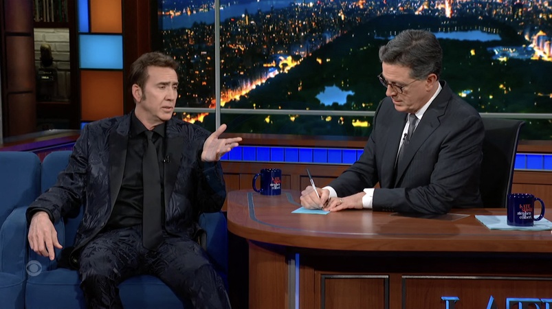 Cage pojawil sie w The Late Show ze Stephenem Colbertem_