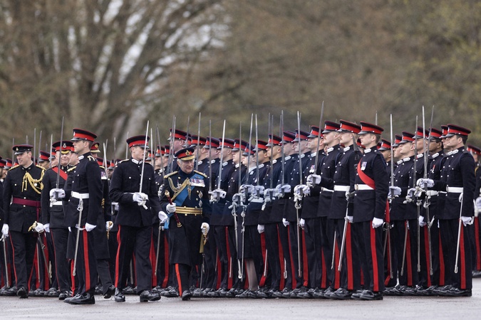 Karol III przeprowadza inspekcję parady władcy w Royal Military Academy Sandhurst_
