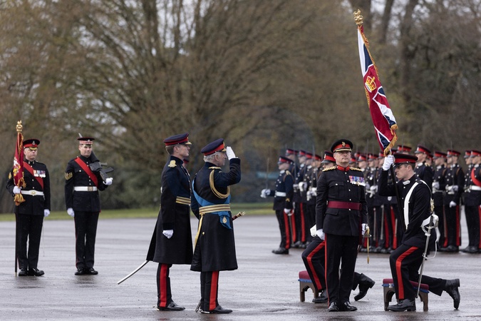Karol III przeprowadza inspekcję parady władcy w Royal Military Academy Sandhurst_