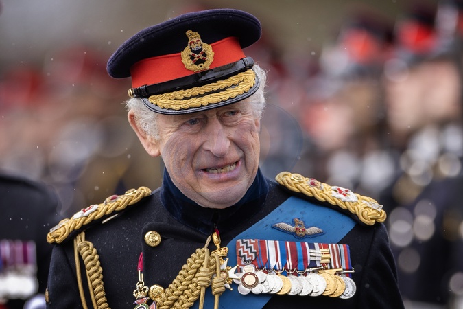Karol III przeprowadza inspekcję parady władcy w Royal Military Academy Sandhurst_