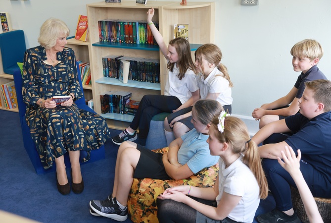 Queen_Camilla z dziecmi w bibliotece