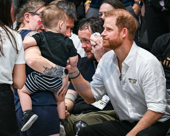 ksiaze Harry przybija piatke dziecku na meczu Invictus games