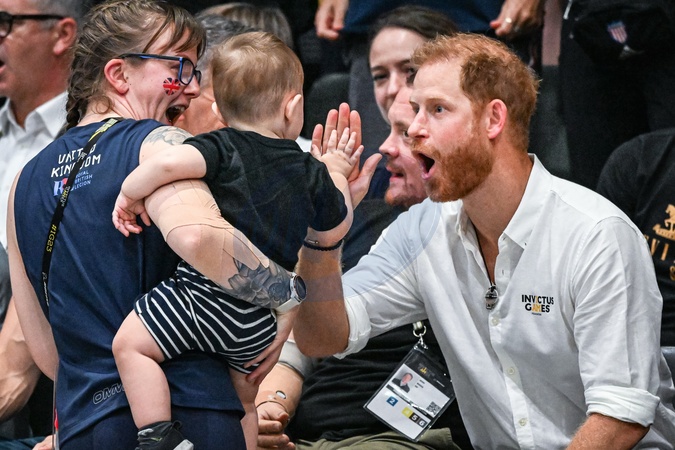 ksiaze Harry przybija piatke dziecku na meczu Invictus games