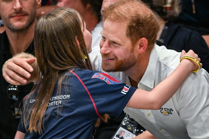 ksiaze Harry przybija piatke dziecku na meczu Invictus games
