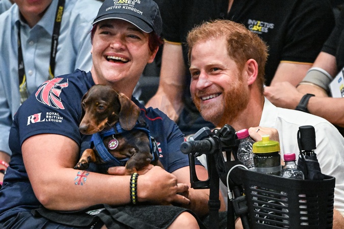 ksiaze Harry przybija piatke dziecku na meczu Invictus games