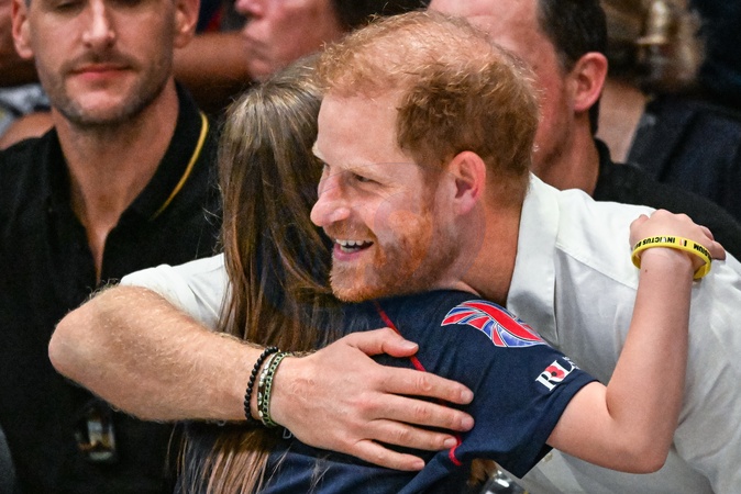 ksiaze Harry przybija piatke dziecku na meczu Invictus games