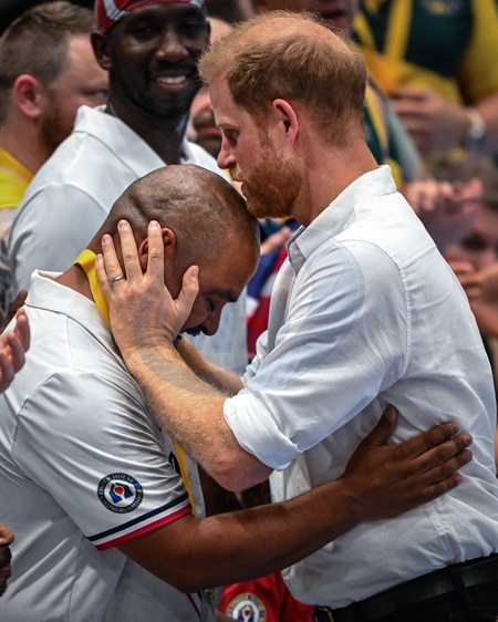 ksiaze Harry przybija piatke dziecku na meczu Invictus games