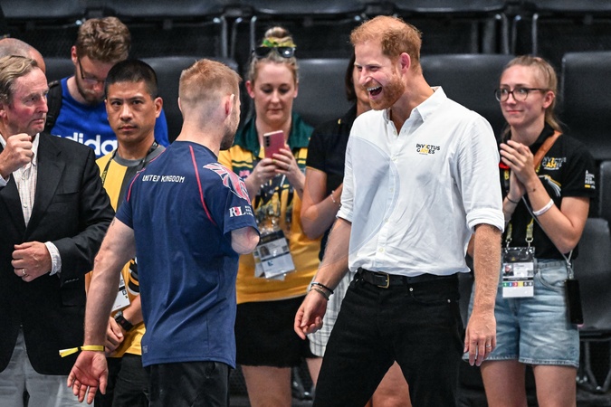 ksiaze Harry przybija piatke dziecku na meczu Invictus games
