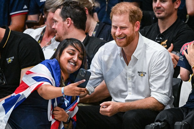 ksiaze Harry przybija piatke dziecku na meczu Invictus games