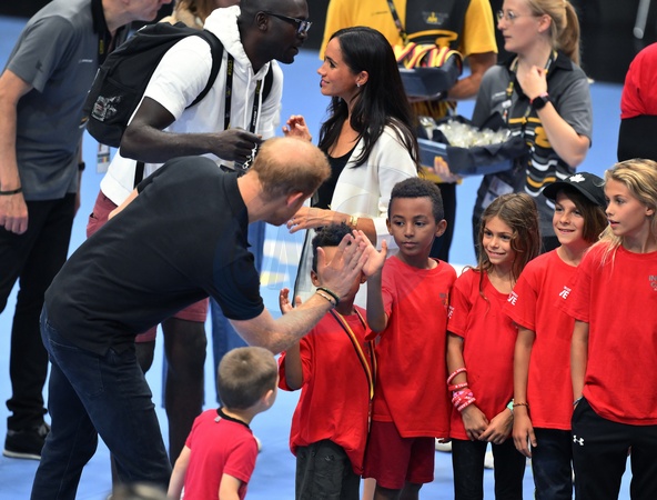 ksiaze Harry przybija piatke dziecku na meczu Invictus games