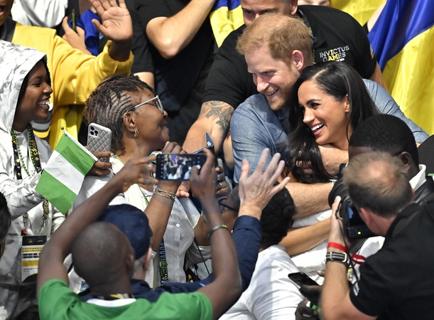 ksiaze Harry przybija piatke dziecku na meczu Invictus games