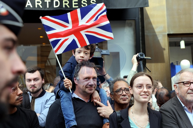 Macron Krol Karol III przed ambasada WB w Paryzu
