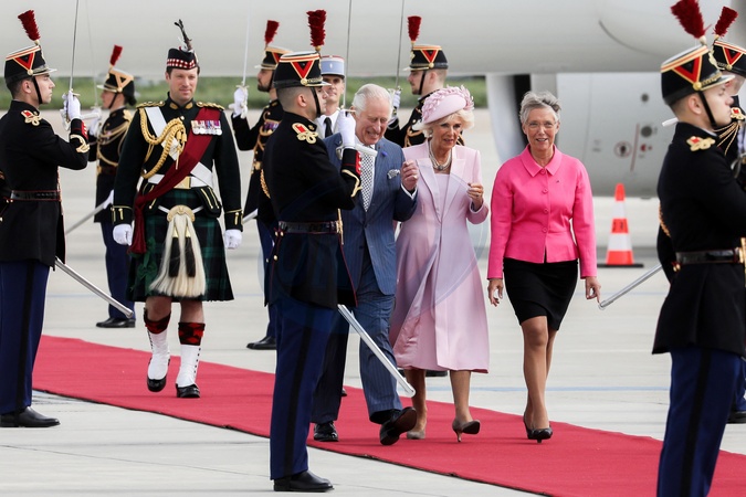 Krol Karol Camilla na lotnisku w Paryzu