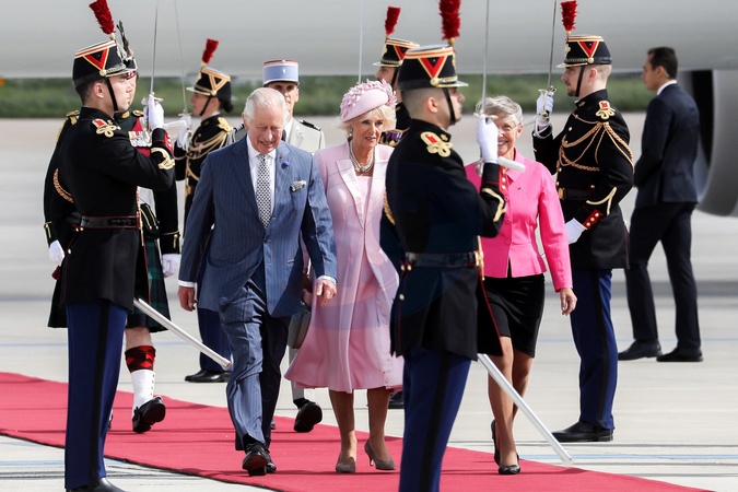 Krol Karol Camilla na lotnisku w Paryzu