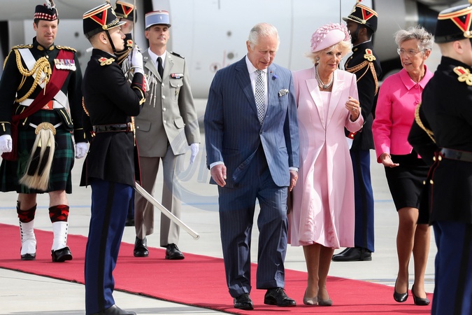 Krol Karol Camilla na lotnisku w Paryzu