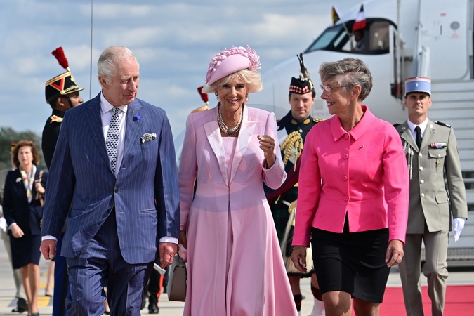 Krol Karol Camilla na lotnisku w Paryzu