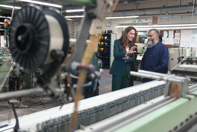 ksiezna Kate w fabryce tekstylnej w Leeds