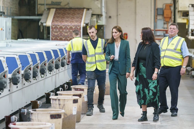ksiezna Kate w fabryce tekstylnej w Leeds