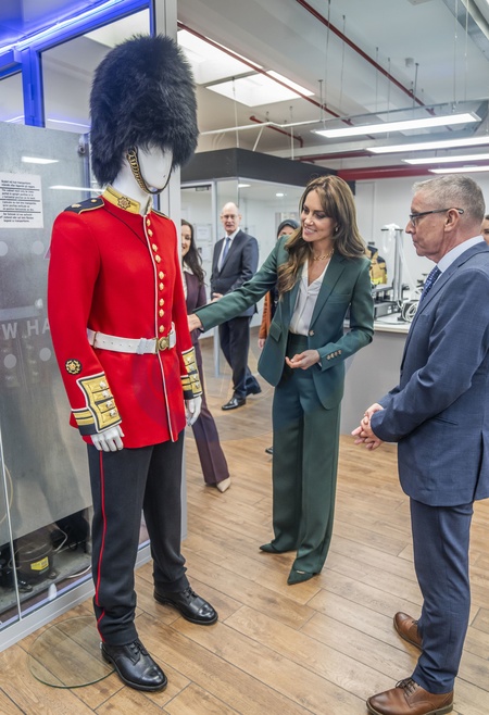 ksiezna Kate w fabryce tekstylnej w Leeds