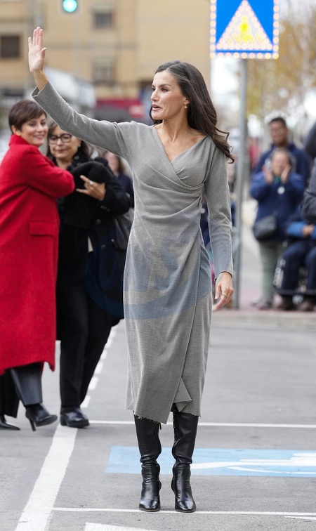 Bain de foule pour la reine Letizia d'Espagne avant de participer à la 23ème édition du Festival du Film Opera Prima au cinéma Moncayo à Tudela, le 3 novembre 2023. Au cours de la cérémonie, un hommage a été rendu au cinéaste espagnol, C.Saura, disparu le 10 février 2023, avec la projection du film "La Chasse" (Ours d'argent du meilleur réalisateur au festival de Berlin en 1966). En 2021, le festival Tudela a inauguré une section parallèle dont la vocation est de rapprocher les étudiants des grandes figures du cinéma espagnol et d'exalter la valeur de regarder un film espagnol classique dans une salle de cinéma, c'est pourquoi la majorité du public de l'événement est étudiant. Le programme officiel de la 23ème édition du festival comprend sept films en compétition, une série d'avant-premières et la projection du film de clôture "Amigos hasta la muerte" réalisé par J.Veiga. Queen Letizia waves upon her arrival at a tribute to C.Saura at the Opera Prima film festival, at the Cine Moncayo, Nov. 3, 2023, in Tudela, Navarra (Spain). To pay tribute to Saura, the event concludes with the screening of 'La caza', a film by Saura awarded in 1966 with the Silver Bear for Best Director at the Berlin Film Festival. In 2021, the Tudela festival inaugurated a parallel section whose vocation is to bring students closer to the great figures of Spanish cinema and to exalt the value of watching a classic Spanish film in a movie theater, which is why the majority of the event's audience are students. The official program of the 23rd edition of the festival includes seven films in competition, a series of preview events and the screening of the closing film "Amigos hasta la muerte" directed by J.Veiga.