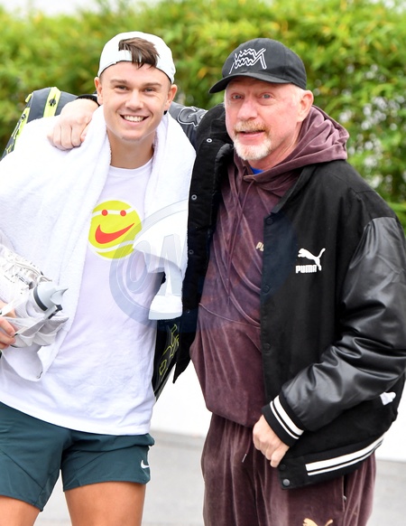 Holger Rune et son entraîneur Boris Becker - H.Rune et son entraîneur B.Becker avant le quart de finale l'opposant à N.Djokovic lors de l'Open Rolex Paris Masters, le 3 novembre 2023. © Ramsamy Veeren / Bestimage H.Rune and his coach B.Becker before the quarter-final between him and N.Djokovic at the Rolex Paris Masters Open, November 3, 2023.