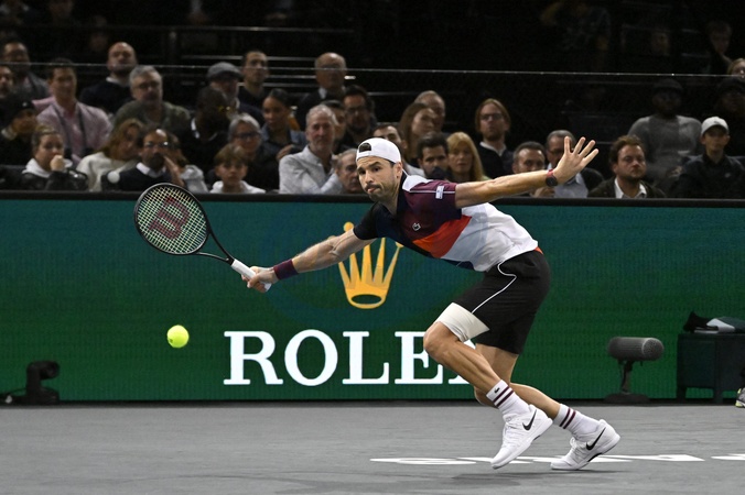 Grigor Dimitrov - G.Dimitrov qualifié pour les demi-finales en battant H.Hurkacz (6-1, 4-6, 6-4) lors du tournoi Rolex Paris Masters, le 3 novembre 2023. © Chryslene Caillaud / Panoramic / Bestimage G.Dimitrov qualified for the semi-finals by beating H.Hurkacz (6-1, 4-6, 6-4) during the Rolex Paris Masters tournament, November 3, 2023.