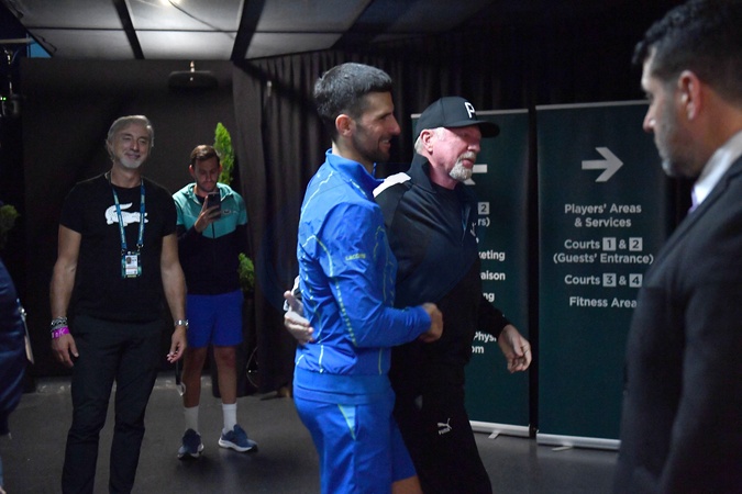 Novak Djokovic et Boris Becker - Novak Djokovic remporte le quart de finale de l'Open Rolex Paris Masters à l'Accor Arena contre Holger Rune le 3 novembre 2023. © Veeren/Bestimage Novak Djokovic wins the quarter-final of the Rolex Paris Masters Open at the Accor Arena against Holger Rune on November 3, 2023.