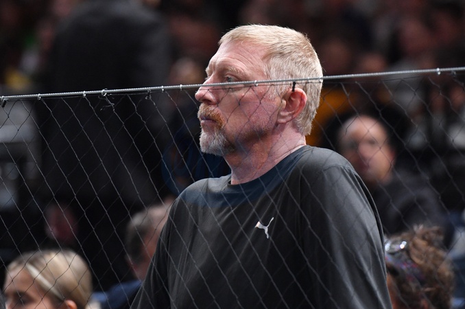 Boris Becker - Novak Djokovic remporte le quart de finale de l'Open Rolex Paris Masters à l'Accor Arena contre Holger Rune le 3 novembre 2023. © Veeren/Bestimage Novak Djokovic wins the quarter-final of the Rolex Paris Masters Open at the Accor Arena against Holger Rune on November 3, 2023.