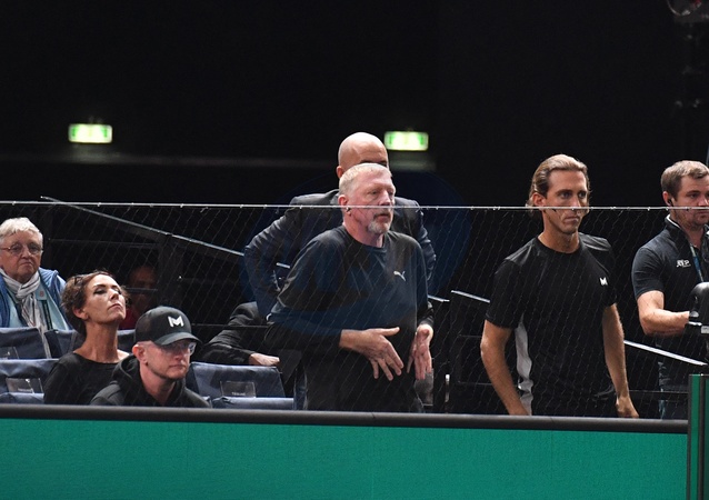 Boris Becker, Aneke Rune - Novak Djokovic remporte le quart de finale de l'Open Rolex Paris Masters à l'Accor Arena contre Holger Rune le 3 novembre 2023. © Veeren/Bestimage Novak Djokovic wins the quarter-final of the Rolex Paris Masters Open at the Accor Arena against Holger Rune on November 3, 2023.