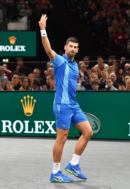 Novak Djokovic remporte le quart de finale de l'Open Rolex Paris Masters à l'Accor Arena contre Holger Rune