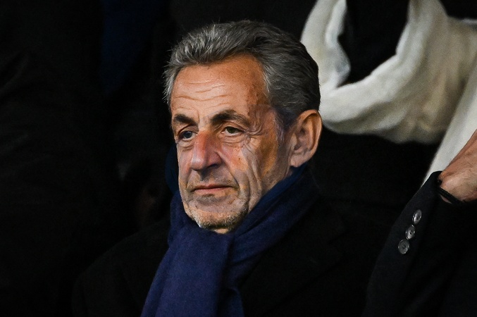 Nicolas Sarkozy - Célébrités dans les tribunes lors du match de football du PSG face à Montpellier au Parc des Princes à Paris le 03 Novembre 2023. © Matthieu Mirville/Bestimage Celebs attending in the stands during the PSG football match against Montpellier at the Parc des Princes in Paris on November 03, 2023.
