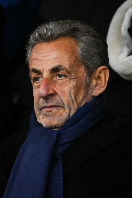 Nicolas Sarkozy - Célébrités dans les tribunes lors du match de football du PSG face à Montpellier au Parc des Princes à Paris le 03 Novembre 2023. © Matthieu Mirville/Bestimage Celebs attending in the stands during the PSG football match against Montpellier at the Parc des Princes in Paris on November 03, 2023.