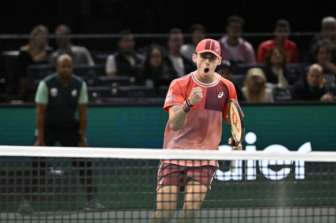 Tennis - Rolex Paris Master 2023 - Alex de Minaur - Australie - Masters 1000 - Andrey Rublev vs. Alex De Minaur (4/6, 6/3, 6/1) le 3 novembre 2023. © Chryslene Caillaud / Panoramic / Bestimage TENNIS - Masters 1000 - Rolex Paris Master 2023 - Andrey Rublev vs. Alex De Minaur (4/6, 6/3, 6/1) on 03/11/2023