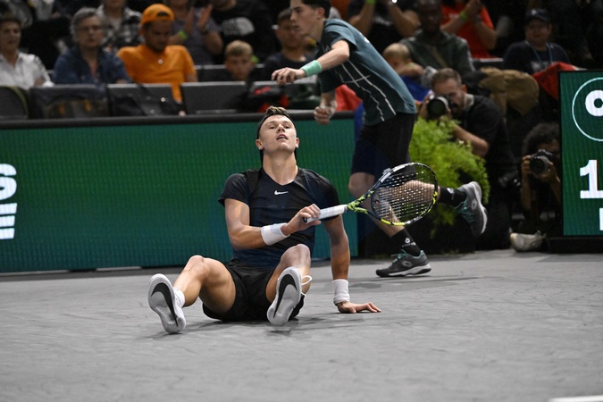 TENNIS - Masters 1000 - Rolex Paris Master 2023 - Holger Rune perd contre N.Djokovic le 3 novembre 2023. © Chryslene Caillaud / Panoramic / Bestimage TENNIS - Masters 1000 - Rolex Paris Master 2023 - Holger Rune loses against N.Djokovic on November 3, 2023.