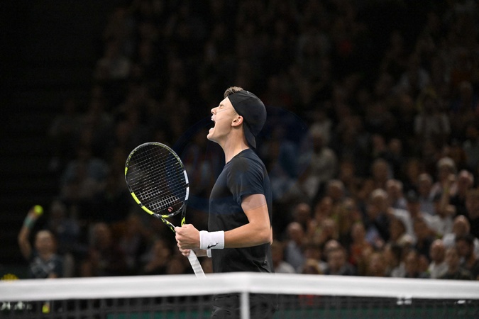 TENNIS - Masters 1000 - Rolex Paris Master 2023 - Holger Rune perd contre N.Djokovic le 3 novembre 2023. © Chryslene Caillaud / Panoramic / Bestimage TENNIS - Masters 1000 - Rolex Paris Master 2023 - Holger Rune loses against N.Djokovic on November 3, 2023.