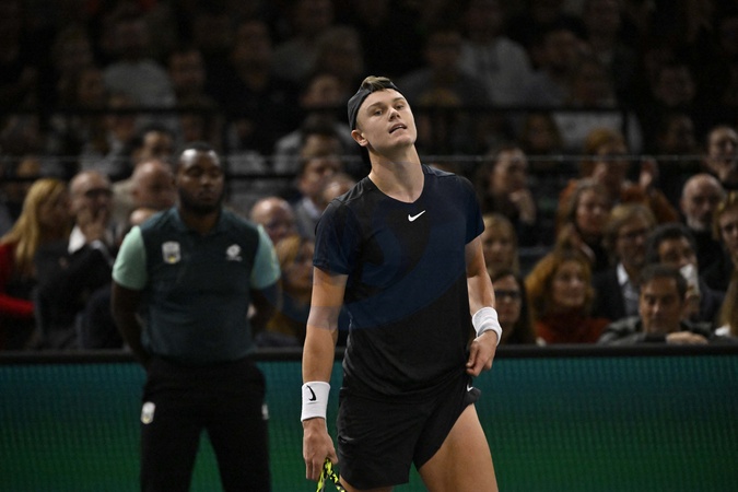 TENNIS - Masters 1000 - Rolex Paris Master 2023 - Holger Rune perd contre N.Djokovic le 3 novembre 2023. © Chryslene Caillaud / Panoramic / Bestimage TENNIS - Masters 1000 - Rolex Paris Master 2023 - Holger Rune loses against N.Djokovic on November 3, 2023.