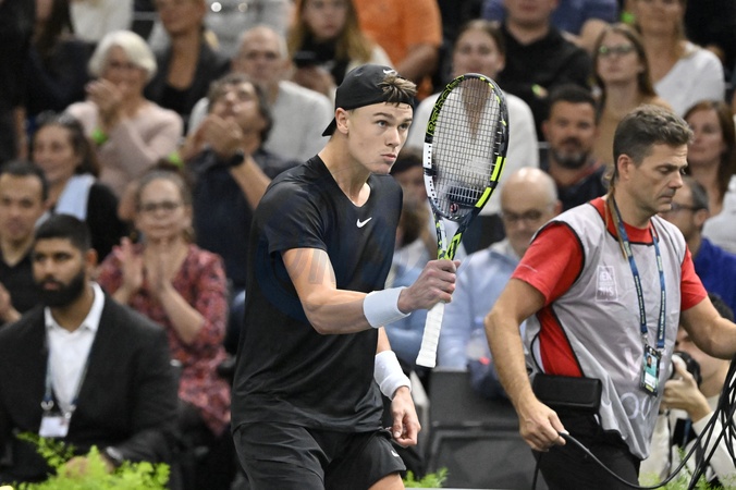 TENNIS - Masters 1000 - Rolex Paris Master 2023 - Holger Rune perd contre N.Djokovic le 3 novembre 2023. © Chryslene Caillaud / Panoramic / Bestimage TENNIS - Masters 1000 - Rolex Paris Master 2023 - Holger Rune loses against N.Djokovic on November 3, 2023.