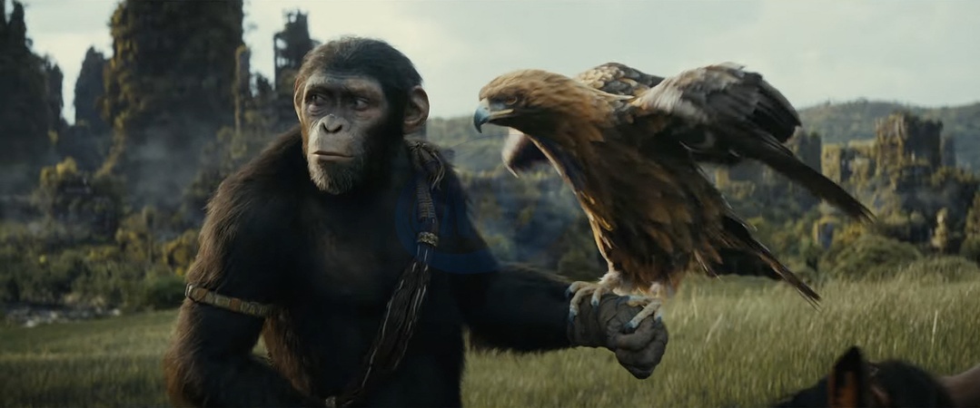 Trailer du film "La Planète des Singes : Le Nouveau Royaume" Pictures must credit: 20th Century Fox A world run by apes while humans forage for food and are hunted down as vermin , is revealed in the full trailer for a new Planet of the Apes movie sequel. The movie, due out in the spring of next year, is set following the reign of Caesar, chimp that was the focal point of three previous films — Rise, Dawn and War. The trailer forKingdom of the Planet of Apes, opens with a long chimpanzee on a horse waiting for a trained eagle to fly down and perch on his arm. It is believed to be Cornelius, the son of Caesar, played by Black Mirror and Bloodline TV actor Owen Teague. A voice over says:” When I sleep, I see strange things. Not memories, new things. I see everything.” It is then revealed that the same chimp is talking to an orangutan who replies with a laugh:” That is not everything.” There follow scenes that include humans running from apes on horseback who are trying to capture them.