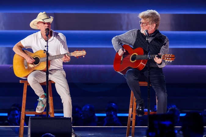 Kenny Chesney and Mac McAnally onstage at the 57th Annual Country Music Association Awards held at the Bridgestone Arena on November 8, 2023 in Nashville, TN.© Curtis Hilbun / AFF-USA.COM