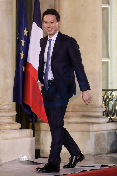 Shou Zi Chew dyrektor generalny Tik Tok z prezydentem Macronem