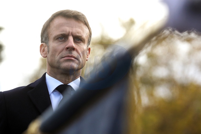 Le président Emmanuel Macron participe à la cérémonie de dépôt de gerbe et du ravivage de la flamme de la Tombe du Soldat inconnu à l'Arc de Triomphe lors de la cérémonie du 105ème anniversaire de l'Armistice de 1918