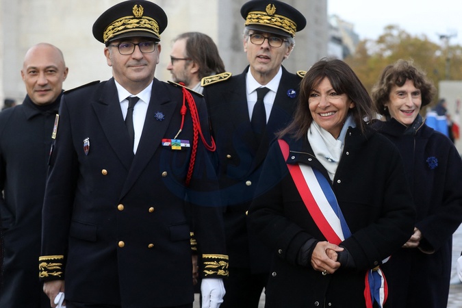 Laurent Nunez, prefet de police de Paris et Anne Hidalgo, maire de Paris à la cérémonie de dépôt de gerbe et du ravivage de la flamme de la Tombe du Soldat inconnu à l'Arc de Triomphe lors de la cérémonie du 105ème anniversaire de l'Armistice de 1918, mettant fin à la Première Guerre mondiale, à Paris, France, le 11 novembre 2023. © Stéphane Lemouton/Bestimage French President takes part at the wreath-laying ceremony and rekindling of the flame of the Tomb of the Unknown Soldier at the Arc de Triomphe during the ceremony of the 105th anniversary of the Armistice of 1918, ending World War I, in Paris, France, on November 11, 2023.