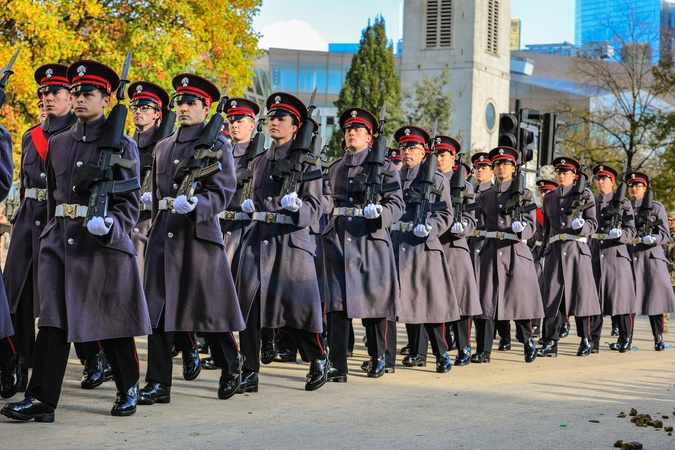 London, UK 11th Nov 2023. Troups, military and civil participants as the parade passes St Paul's Cathedral. This year's Lord Mayor's Show brings together 7,000 people, including charities, community groups, the armed forces, 250 horses, and over 150 floats in a three-mile-long parade, including the golden State Coach with new Lord Mayor Michael Mainelli., Credit:Imageplotter / Avalon
