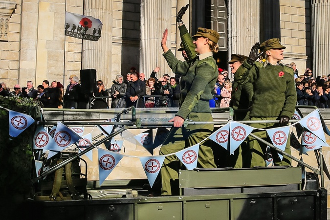 London, UK 11th Nov 2023. Military and civil participants as the parade passes St Paul's Cathedral. This year's Lord Mayor's Show brings together 7,000 people, including charities, community groups, the armed forces, 250 horses, and over 150 floats in a three-mile-long parade, including the golden State Coach with new Lord Mayor Michael Mainelli., Credit:Imageplotter / Avalon