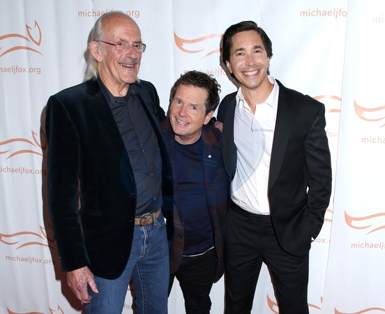 Christopher Lloyd, Michael J. Fox and Justin Long attending the Michael J. Fox Foundation 2023 'A Funny Thing Happened on the Way to Cure Parkinson's' Gala held at Cipriani South Street at Casa Cipriani on November 11, 2023 in New York City, NY©Steven Bergman/AFF-USA.COM