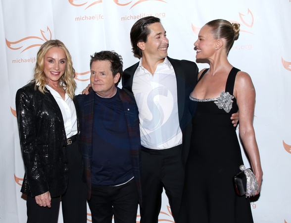 Tracy Pollan, Michael J. Fox, Justin Long and Kate Bosworth attending the Michael J. Fox Foundation 2023 'A Funny Thing Happened on the Way to Cure Parkinson's' Gala held at Cipriani South Street at Casa Cipriani on November 11, 2023 in New York City, NY©Steven Bergman/AFF-USA.COM
