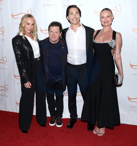 Tracy Pollan, Michael J. Fox, Justin Long and Kate Bosworth attending the Michael J. Fox Foundation 2023 'A Funny Thing Happened on the Way to Cure Parkinson's' Gala held at Cipriani South Street at Casa Cipriani on November 11, 2023 in New York City, NY©Steven Bergman/AFF-USA.COM
