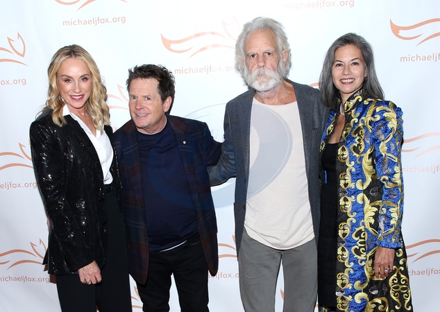 Tracy Pollan, Michael J. Fox, Bob Weir and Natascha Muenter Weir attending the Michael J. Fox Foundation 2023 'A Funny Thing Happened on the Way to Cure Parkinson's' Gala held at Cipriani South Street at Casa Cipriani on November 11, 2023 in New York City, NY©Steven Bergman/AFF-USA.COM